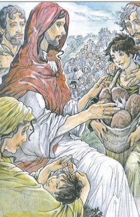 Il racconto di Giovanni, che abbiamo letto, mette al centro Gesù: non sono i discepoli che attirano la sua attenzione sulla fame della folla (come fa Marco), ma è Gesù che fa notare il problema ed è Gesù stesso, non i discepoli, che distribuisce i pani. Il dialogo di Gesù con Filippo e Andrea mette in luce l’incapacità umana a risolvere il caso. È impossibile per l’uomo. Il racconto fa risaltare questa impotenza non per esaltare la grandezza del miracolo o la potenza di Cristo, ma per rendere evidente che la salvezza è un dono, che viene da Dio e non dall’uomo.
