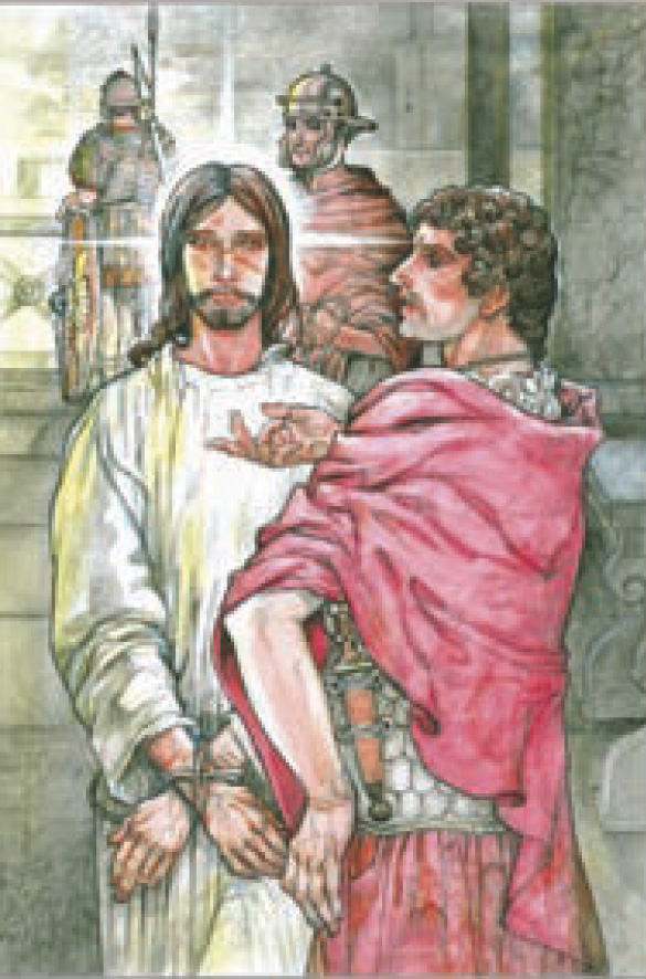 Sballottato di qua e di là, Gesù non protesta, non accusa, non si difende. Il suo atteggiamento imperturbabile diventa una provocazione forte: non per quelli che si prendono gioco di lui, ma per Pilato, che crede di essere padrone della situazione ma non lo è. Pilato ha paura della verità. È schiavo degli umori della folla e dei suoi interessi di carriera.