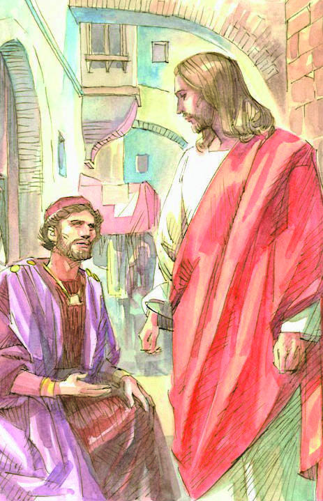 C’è un secondo punto di un test sulla nostra fede… Gesù offre il vero volto di Dio al quel tale (e a ciascuno di noi): Fissò lo sguardo su di lui e lo amò. Questo è Dio! Qui nasce la fede: non un dovere, non qualcosa da fare o da pagare, ma lo sguardo di Dio fatto di amicizia, di amore da accogliere.