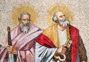 I santi Pietro e Paolo apostoli sono uniti nella loro vocazione: stessa missione di confermare e consolidare la fede dei fratelli (Pietro), missione di diffondere la conoscenza e la salvezza di Gesù nel mondo (Paolo).