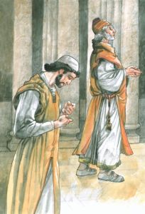 Ecco davanti a noi i due uomini religiosi, perché entrambi pregano, ma uno è in piedi e l’altro quasi si nasconde… uno è orgoglioso delle sue buone azioni e l’altro vergognoso di ciò che è… uno che elenca i suoi meriti e l’altro che si dichiara peccatore.