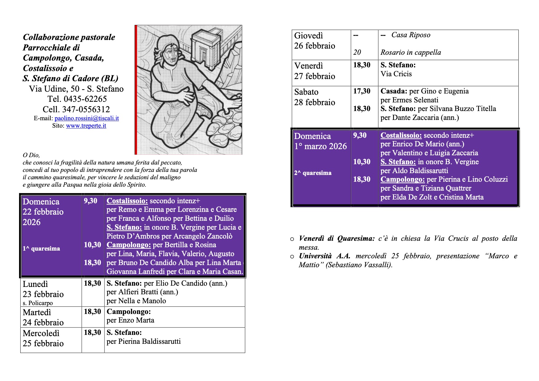 Avvisi per la settimana dal 15 al 22 febbraio: