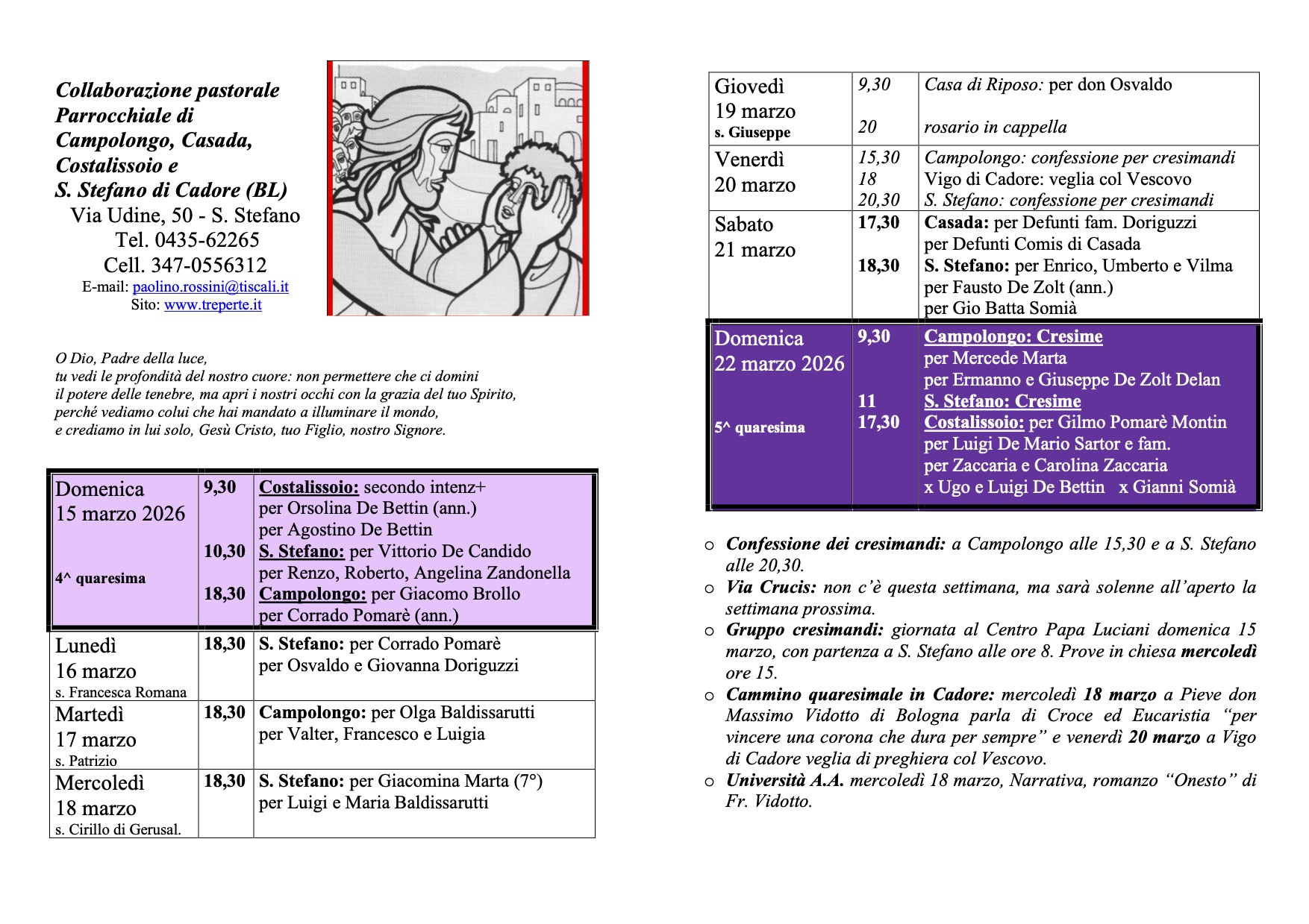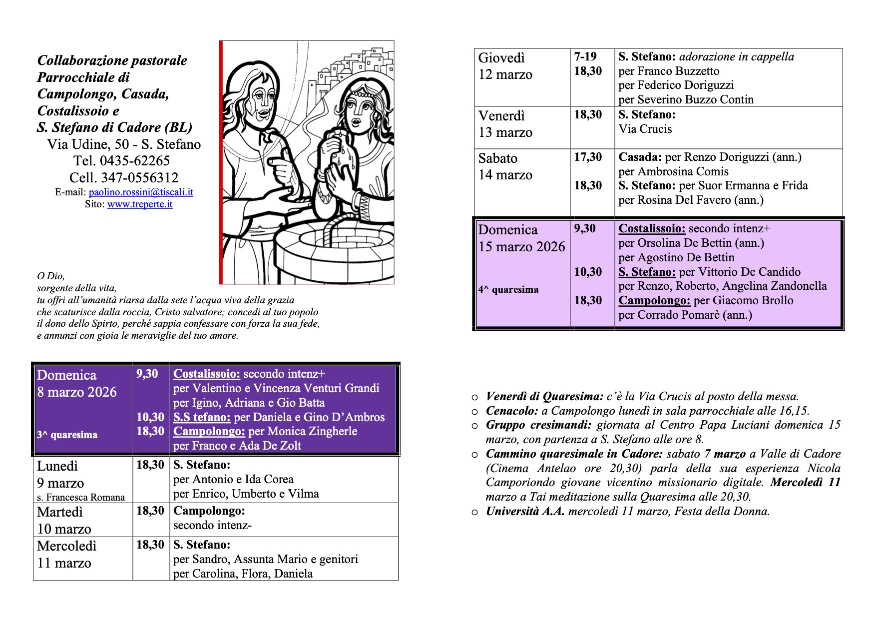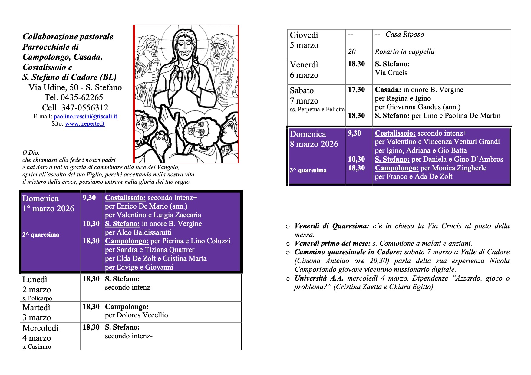 Avvisi per la settimana dal 27 febbraio al 6 marzo: