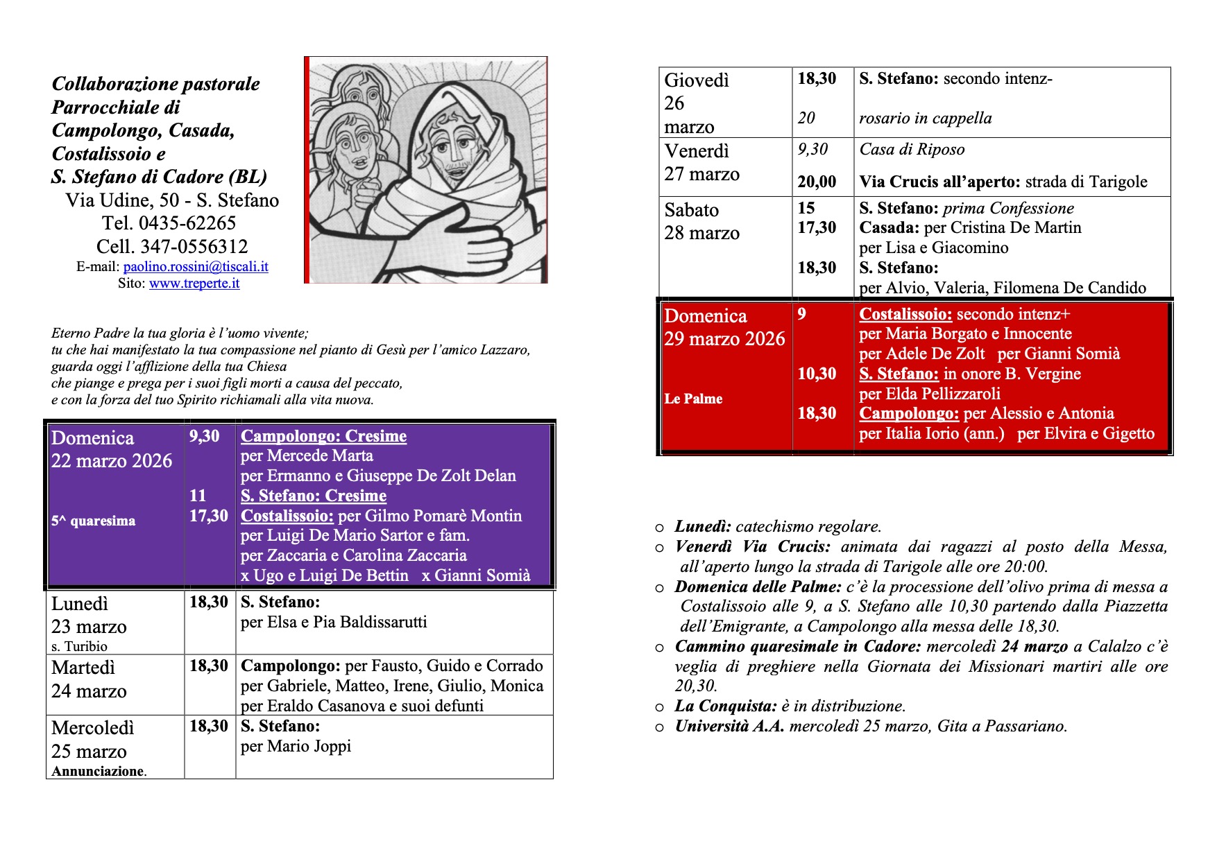 Avvisi per la settimana dal 27 marzo al 3 aprile: