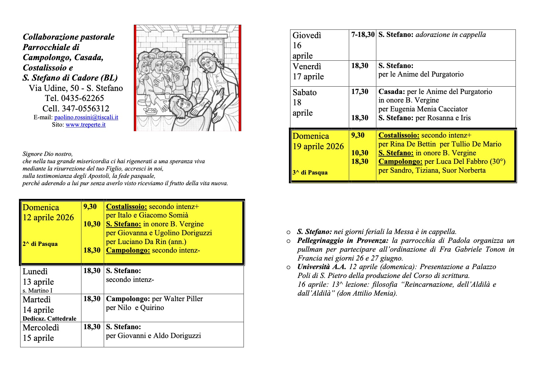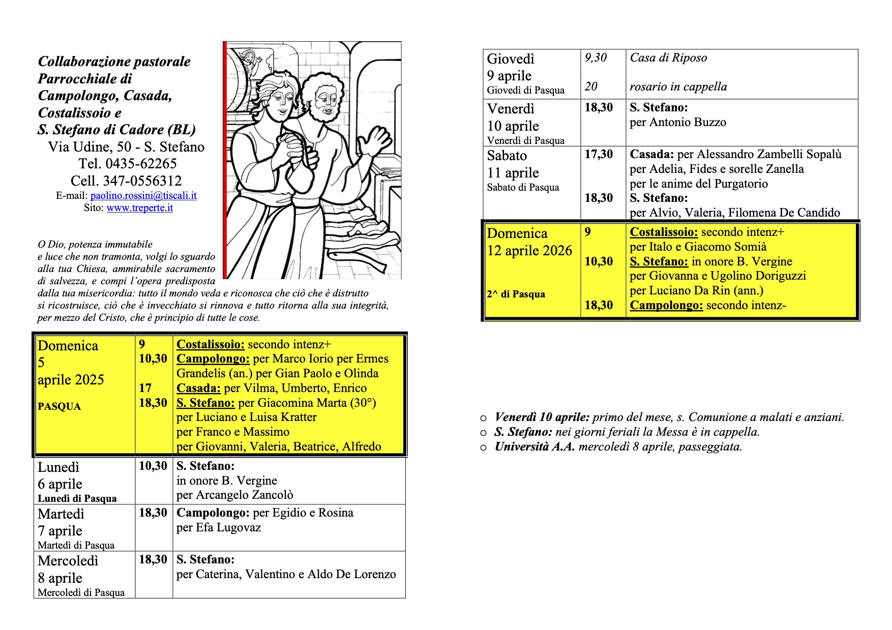 Avvisi per la settimana dal 25 aprile al 2 maggio: