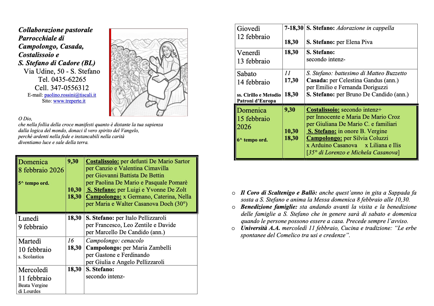 Avvisi per la settimana dal 9 al 16 febbraio: