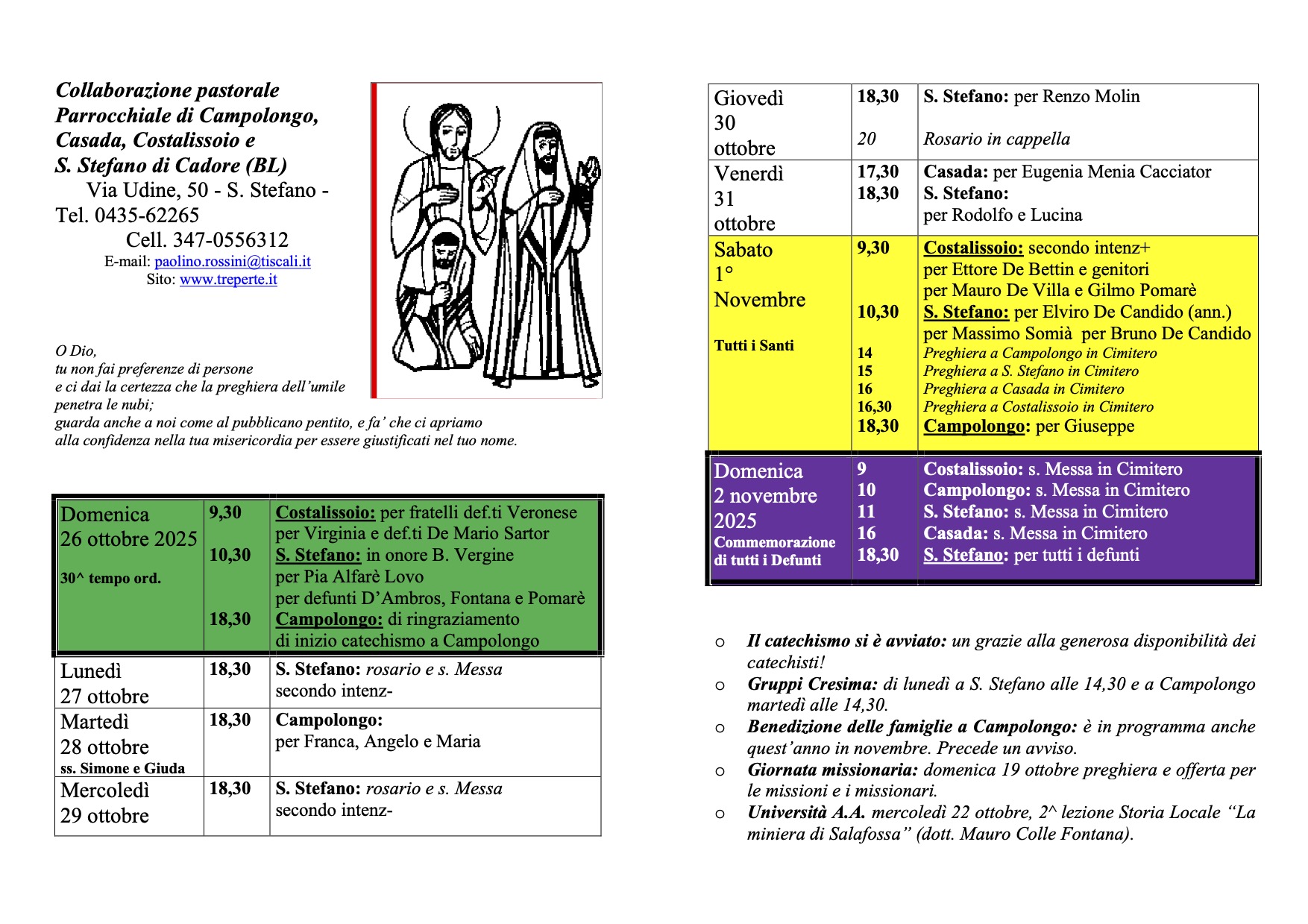 Avvisi per la settimana dal 23 al 30 ottobre:
