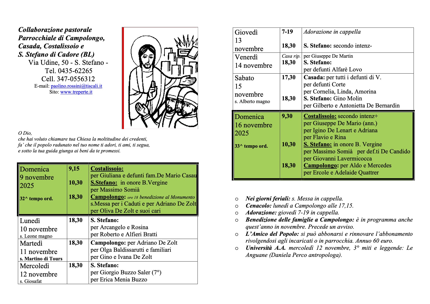 Avvisi per la settimana dal 31 ottobre al 7 novembre: