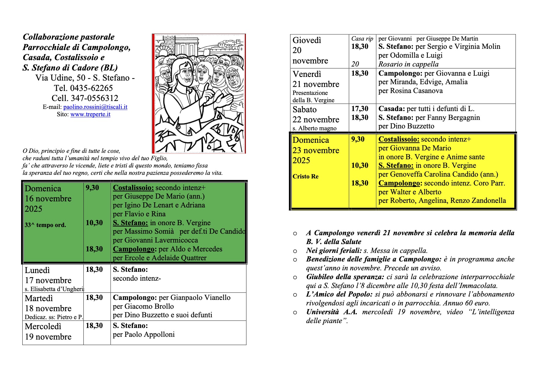 Avvisi per la settimana dal 16 al 23 febbraio: