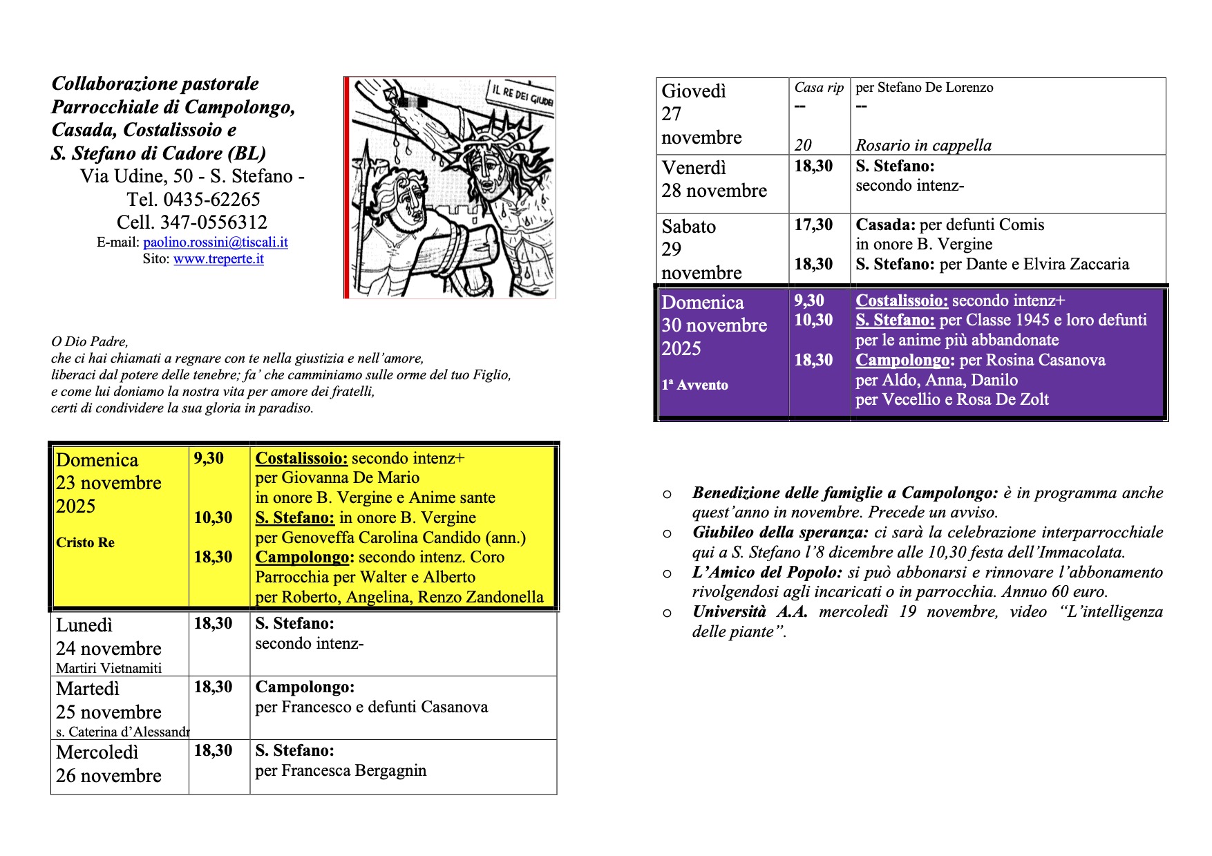 Avvisi per la settimana dal 24 novembre al 1° dicembre: