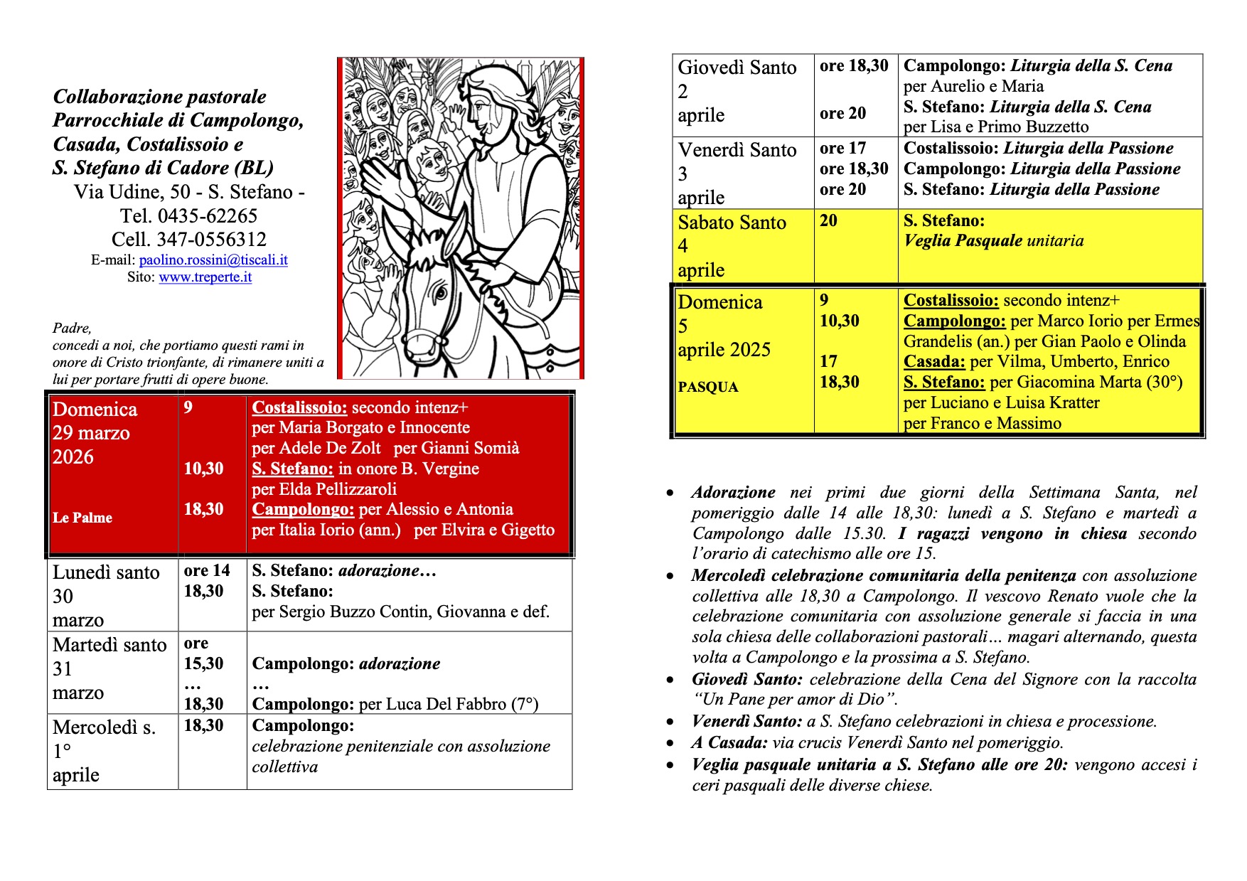 Avvisi per la settimana dal 28 marzo al 4 aprile: